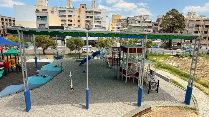 陽光及崇成公園的兒童特色遊具攀爬網設置場域,該2案由臺南市政府和國土署各補助500萬元,專為訓練兒童運動技能及建立專注力為目標的遊戲設施。此項工程包括陽光公園的球形及崇成公園的矩形、三角形等幾何形式攀爬設施,除使用天然礫石鋪面的防墜設計外,另為因應南臺灣夏季豔陽高照的氣候,另案加設遮陽網,以避免使用兒童及家長曬傷,確保在炎熱天氣下仍能舒適遊玩。
