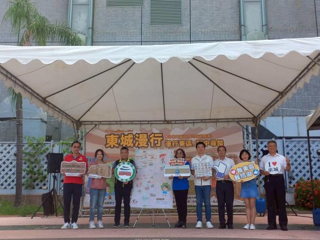 臺南市東區區公所今(18)日正式發表《東城漫行地圖》,在地立委、議員、里長及社區理事長們均到場熱情支持,地圖整合東門町人文懷舊路線、西竹圍歷史建築路線,以及都市與自然景觀特色,將文化記憶圖象化,不僅作為遊覽指南,更成為探索東城歷史文化的橋樑;為了讓民眾更深入體驗地圖所傳遞的文化意涵,活動現場同步舉辦富含東區意象的實境解謎活動。參與者透過謎題問答、地圖指引等,實地感受東區的歷史軌跡與文化風貌,讓原本抽象的歷史轉化為可看、可觸、可體驗的生活記憶,展現東區獨有的都會文化魅力。